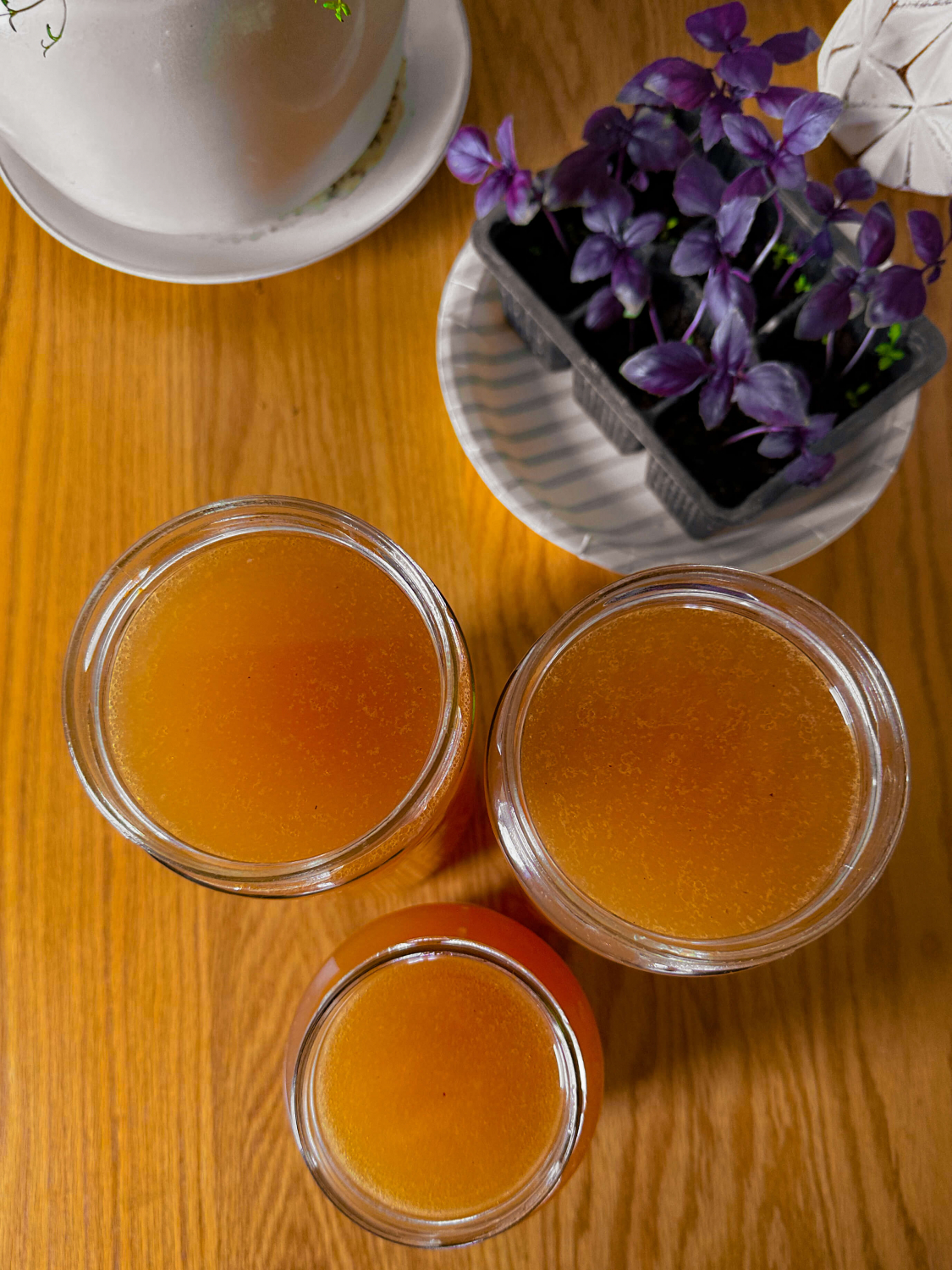 1. Запекаем кость в течении часа на 200 градусов. Вытопившийся с неё жир сливаем в баночку. Он потом пойдет для готовки какой-нибудь унылой грудки.