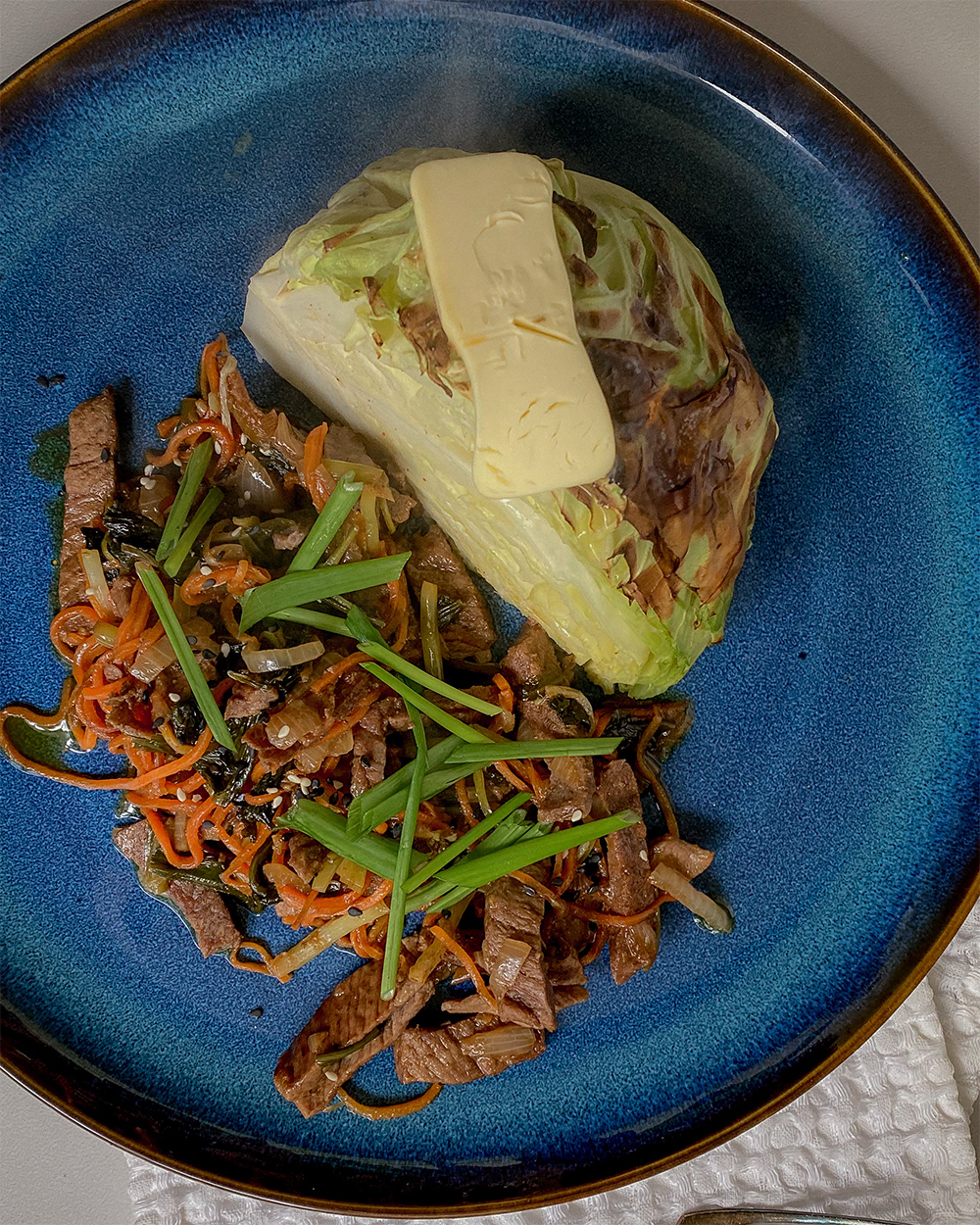 Сегодня у нас простой обед: капустный «стейк» и говядина на азиатский манер.