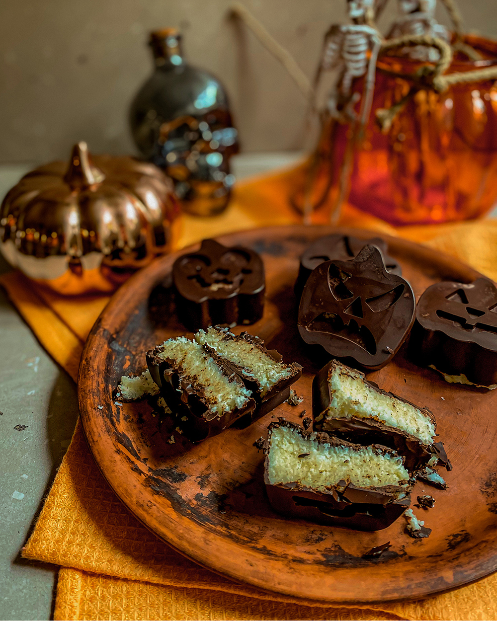 Какао масло растопить на водяной бане, добавить какао порошок и вымешать. Это будет глазурь. Можно взять и готовый чёрный шоколад без сахара, но у нас его днём с огнём не сыщешь. Так что делаем сами.