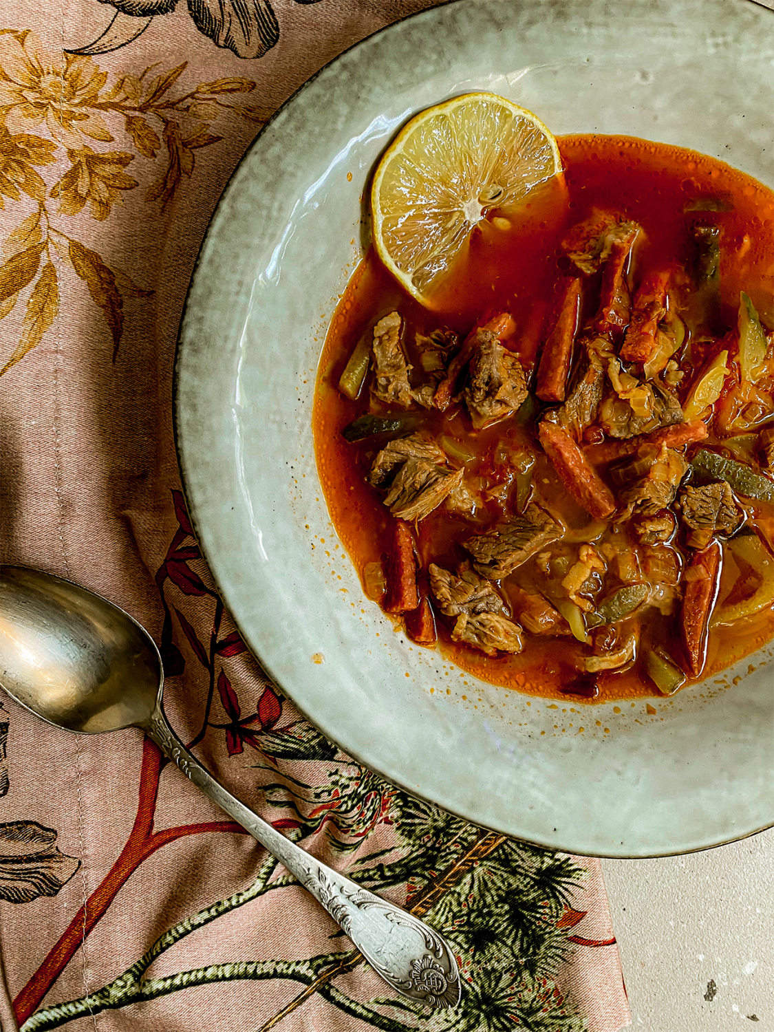 — отварное мясо (у меня говядина на кости, сваренная накануне)