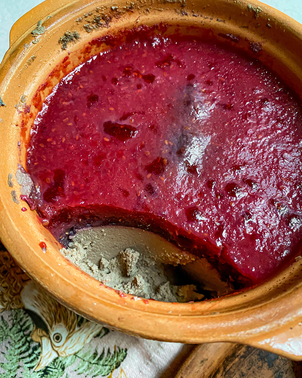 Раскладываем горячим по горшочкам или в стеклянные контейнеры. Я сделала сверху желе из малины — просто прогрела малину и пробила блендером, добавила желатин и этим «джемом» залила паштет сверху и убрала в холодильник.